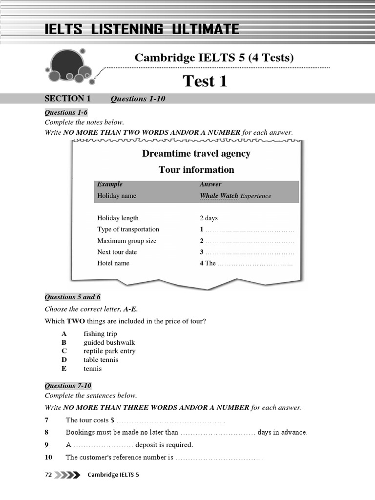 Ielts Listening Dreamtime Travel Agency Cambridge 5 Test 1